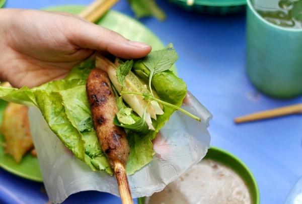 Bánh ướt thịt nướng hấp dẫn thực khách nhờ mùi thịt nướng sả thơm ngào ngạt…