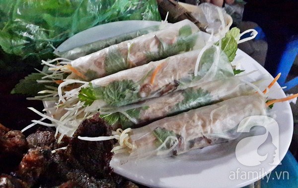 Bò nướng lá lốt: Món cuốn ngon này được người Sài Gòn đặc biệt thích. Bò nướng lá lốt cuốn hấp dẫn vì vị ngon của thịt bò nướng lá lốt, béo của đậu phộng hòa chung vị chát của chuối, chua của khế, kết hợp với hương thơm lạ của các loại rau ăn kèm.